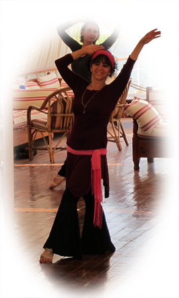 Daily classes will include combinations, technical training, musical awareness, guided improvisations. Explanations of the, melodies, motifs, styles and rhythms will be given,as well as how to dance to them. Accompanying us will be excellent musicians playing traditional instruments; nai, oud, arghool, accordian, tabla, riq, mashar, vocals....As the musicians will be on board with us, there will be time for relaxed spontaneous interaction with them.